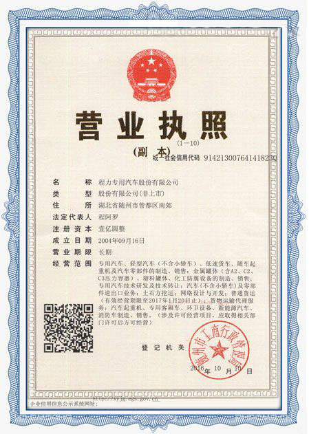 程力專用汽車(chē)股份有限公司各類(lèi)專用汽車(chē)的專業(yè)廠家,大型專用汽車(chē)廠。國(guó)內(nèi)園林綠化、石油化工、市政環(huán)衛(wèi)、壓力容器專用汽車(chē)商。注冊(cè)“程力威”牌,產(chǎn)品代碼:“CLW”。東風(fēng)、解放、福田、重汽、陜汽、北奔等公司的重要合作伙伴,主要從事各類(lèi)專用汽車(chē)的業(yè)務(wù),同時(shí)也銷(xiāo)售各大型廠家的整車(chē)及配件。公司擁有自行出口權(quán),其主導(dǎo)品種有灑水車(chē)系列、吸污(吸糞)車(chē)系列、垃圾車(chē)系列、掃地車(chē)系列、油罐加(運(yùn))油車(chē)系列、高空作業(yè)車(chē)系列、清障車(chē)系列、隨車(chē)吊系列、自卸車(chē)系列、教練車(chē)系列、半掛車(chē)系列、化工車(chē)系列、消防車(chē)系列、廂式(冷藏車(chē))系列、牽引車(chē)系列、粉粒物料車(chē)系列、攪拌車(chē)系列、壓力容器系列、專用車(chē)配件等十八大系列300多個(gè)品種車(chē)型。同時(shí)批發(fā)東風(fēng)、解放、楚風(fēng)各種二類(lèi)底盤(pán)。